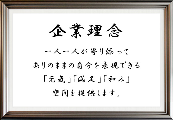 『和らぐ・和む』を念頭に置き、日常生活に同調した、落着きと雰囲気をもった空間であり、人と人、人とスタッフの強い絆をもって結びつく、心のこもった愛情あふれる施設を目指しています。